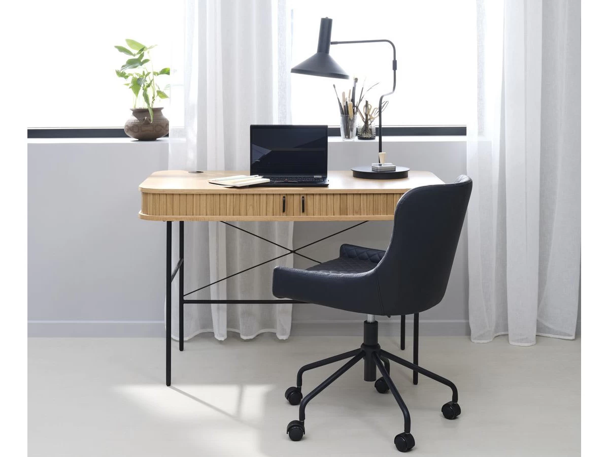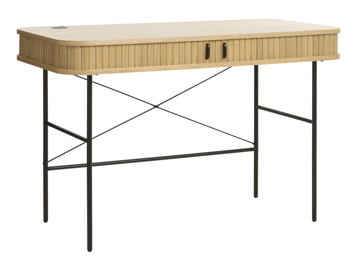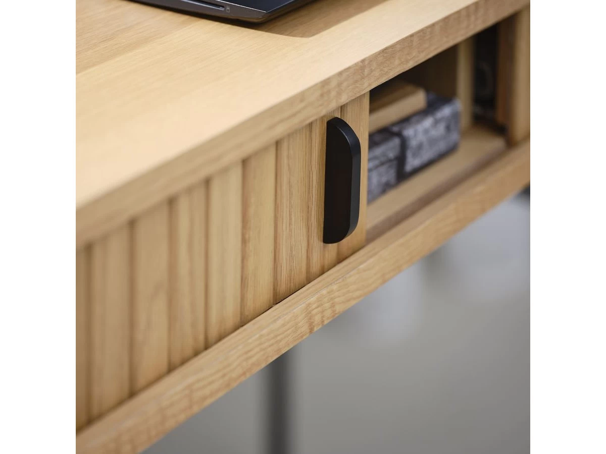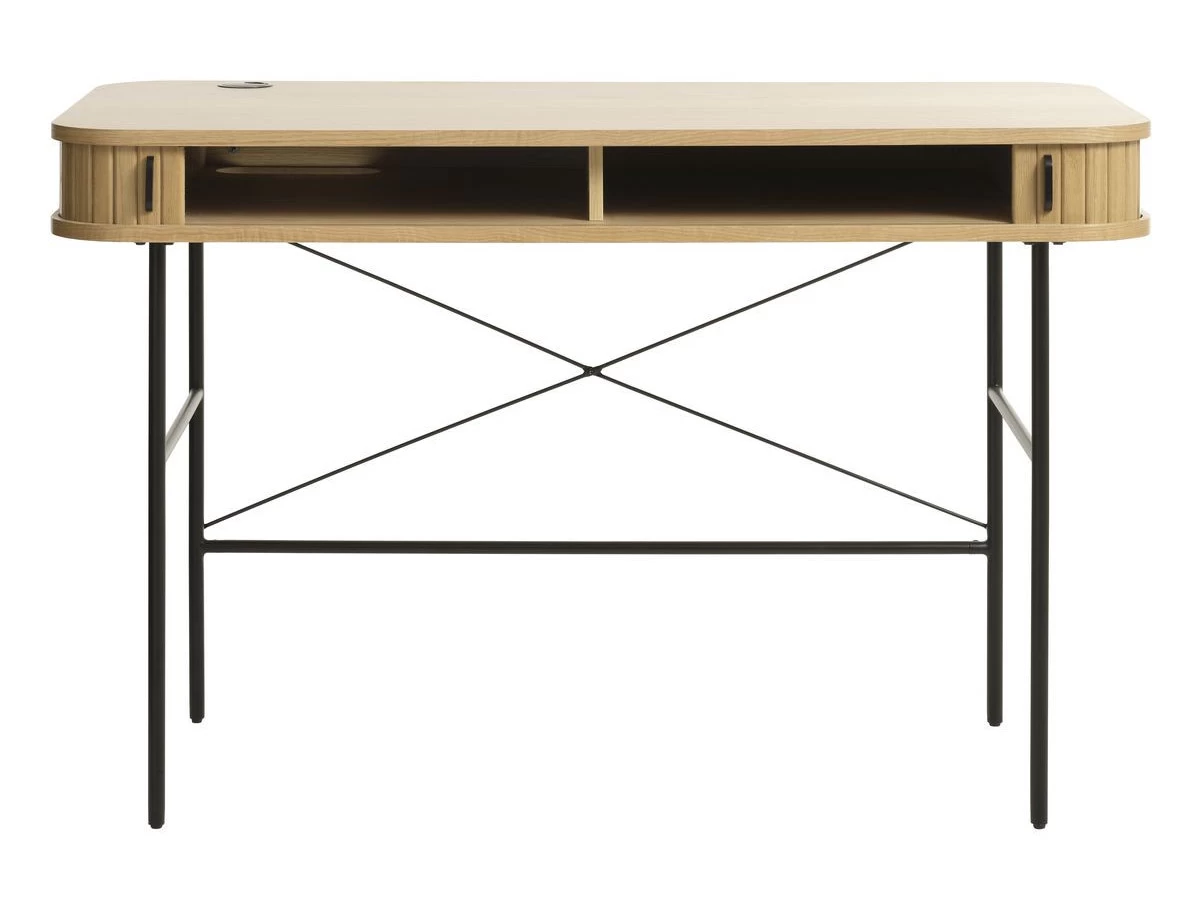 En quête d’un bureau pour votre chambre ou votre salon ? Laissez-vous séduire par le bureau PAULINA et ses longs pieds en métal, lui conférant une aura d’élégance et de classe. D’une part, ce bureau vous offre des rangements pratiques avec ses deux niches dissimulées derrière ses deux portes coulissantes. D’autre part, il s’accompagne d’un passe-câble de façon à garder un environnement de travail visuellement ordonné et propre !