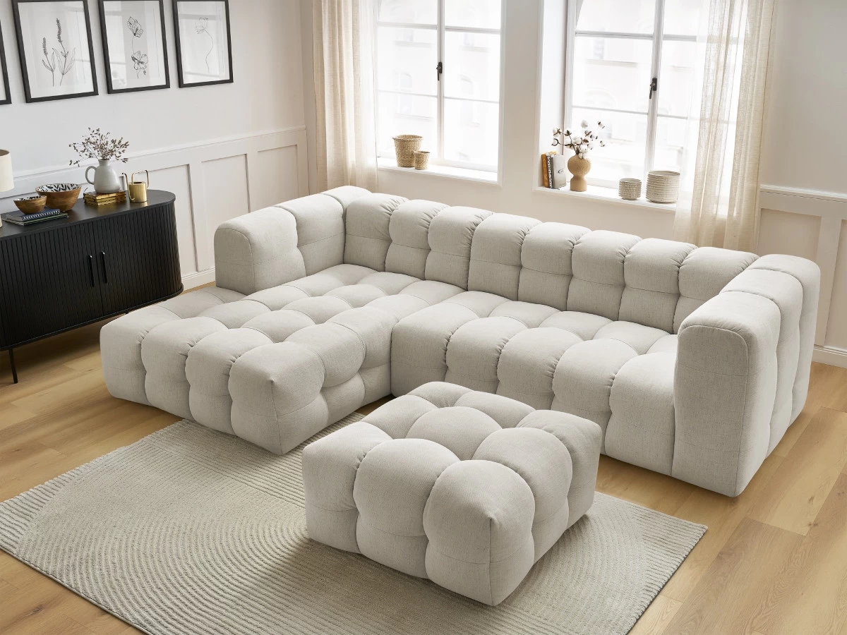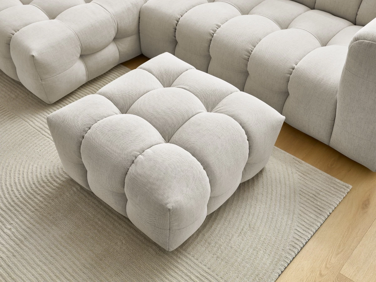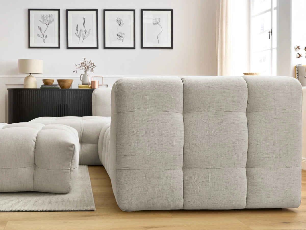 La première chose qui saute aux yeux avec cette collection CLOUD, c’est bien son visuel. Inspirée du style contemporain avec une structure entièrement matelassée, le canapé CLOUD porte bien son nom et vous propose un look original et inimitable. Avec le canapé CLOUD dans votre salon, vous allez piquer la curiosité et les regards de tous vos invités ! Ensuite, pour renforcer son aspect de nuage, nous avons fait le choix d’un tissu lisse plein de douceur qui donnera une touche de chaleur et de tendresse à votre intérieur. D’autant plus que ce tissu est déperlant. Ainsi, le tissu n’absorbera pas les liquides et vous serez à l’abri de nombreux petits incidents du quotidien.