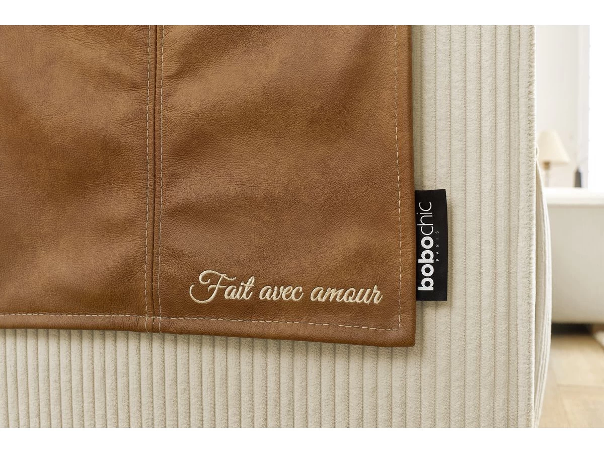 Cette édition limitée s’accompagne d’une petite pochette sur l’un des accoudoirs. Tout d’abord, sachez que cette pochette est en vrai cuir. Celle-ci apportera donc une touche chic supplémentaire, renforçant l’élégance naturelle du canapé. Cette pochette est décorée par un message brodé « fait avec amour ». Cependant, ce message est entièrement personnalisable. Ainsi, lors de votre commande, vous pourrez décider de ce que vous souhaitez inscrire sur la pochette en cuir. Une façon pour vous, de rendre votre canapé NIHAD édition limitée véritablement unique !