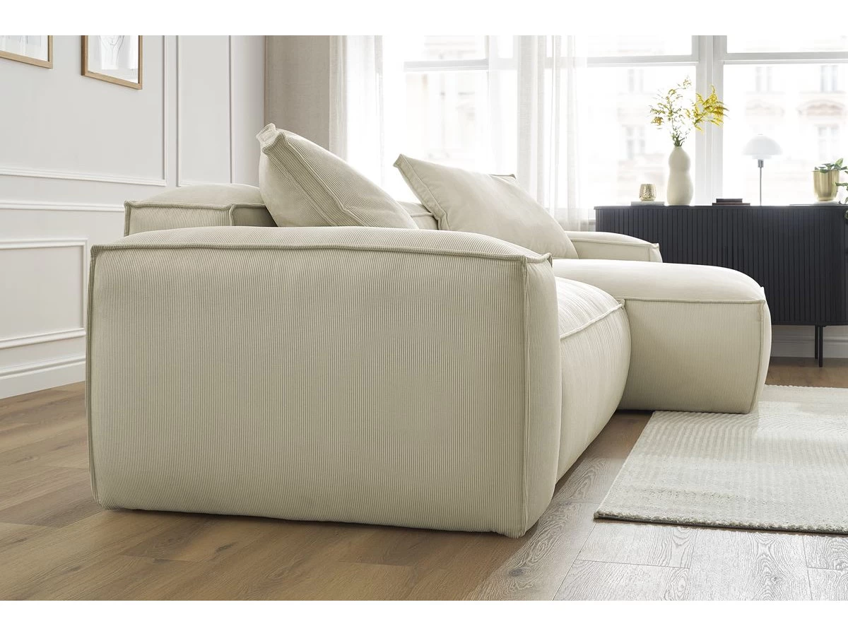 Premier élément qui frappe avec la collection BOHÈME, c’est son aura. Inspiré du style moderne, ces canapés s’organisent autour de lignes épurées et droites avec de larges accoudoirs, ses finitions en passepoil et un dossier bas. Tout cela lui confère un style unique à même d’apporter une touche moderne et minimaliste à votre décoration d’intérieur. Cependant, sachez que ce visuel peut être personnalisé via le choix du tissu. Le velours côtelé est particulièrement tendance depuis quelques années et très présent dans notre catalogue. Le principal avantage de ce dernier, c’est bien évidemment son visuel. Instantanément, le velours côtelé apportera une aura d’élégance et de noblesse à votre canapé ainsi qu’à votre intérieur. Sans compter que ce revêtement est particulièrement agréable au toucher et chaleureux, ce qui le rend très pertinent si vous souhaitez vous créer un petit cocon de confort et douceur en vue de la fin d’année ! Enfin, le tissu velours côtelé présente deux particularités : un traitement antitache et une fonction déperlante. Le traitement prévient l’apparition de la saleté, permettant au tissu de rester sec et propre. Pour ce qui est de la fonction déperlante, celle-ci empêche l’infiltration des saletés et rend l’entretien plus simple et efficace. Cependant, un lavage fréquent du canapé peut affecter la performance du traitement antitache et donc, le rendre moins efficace.