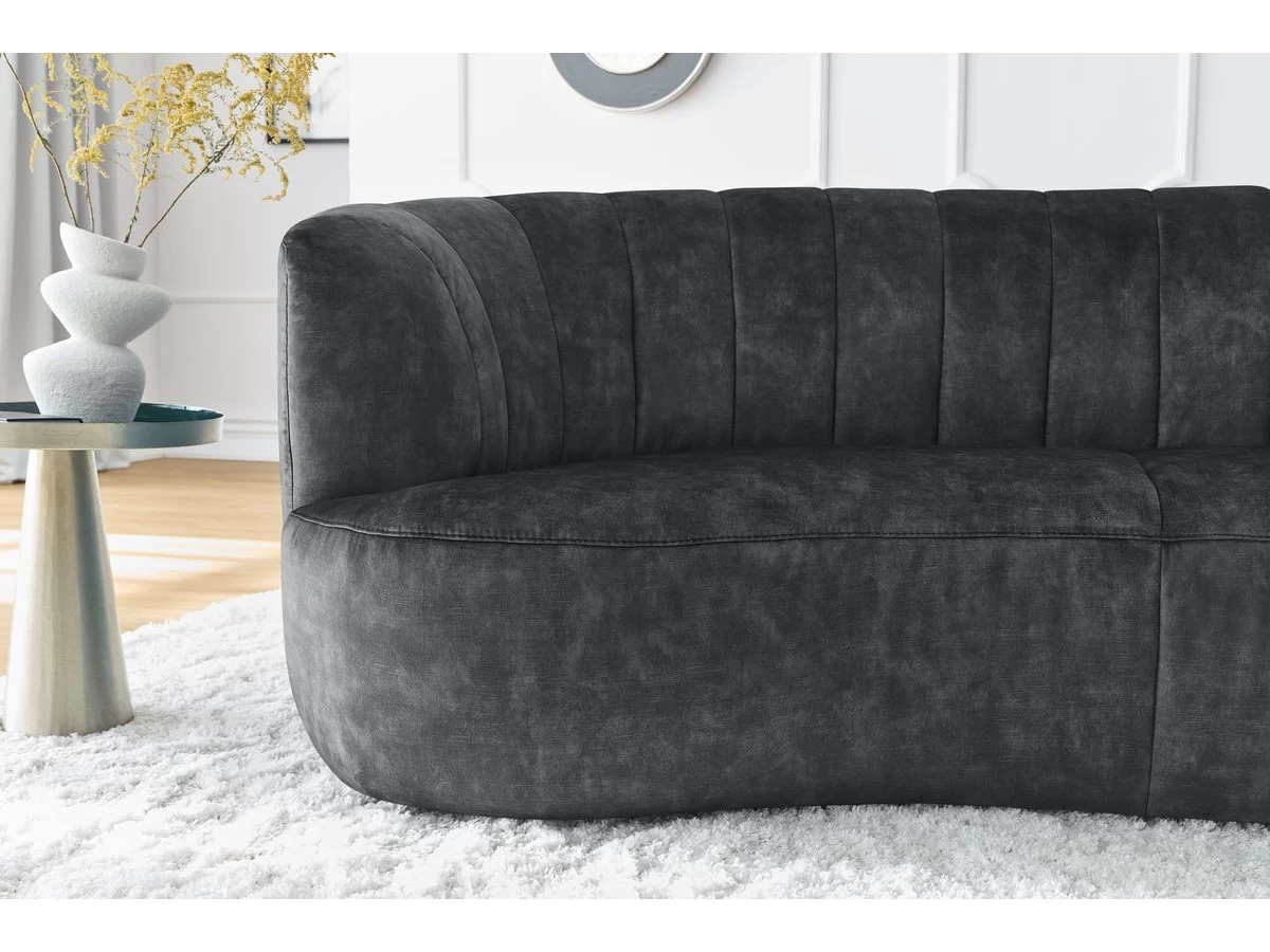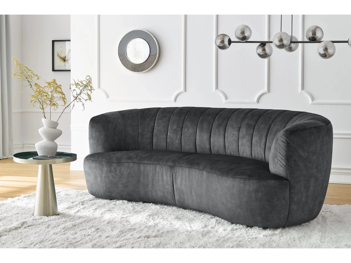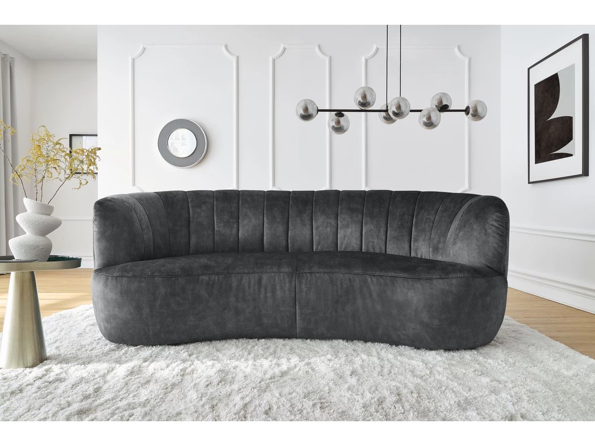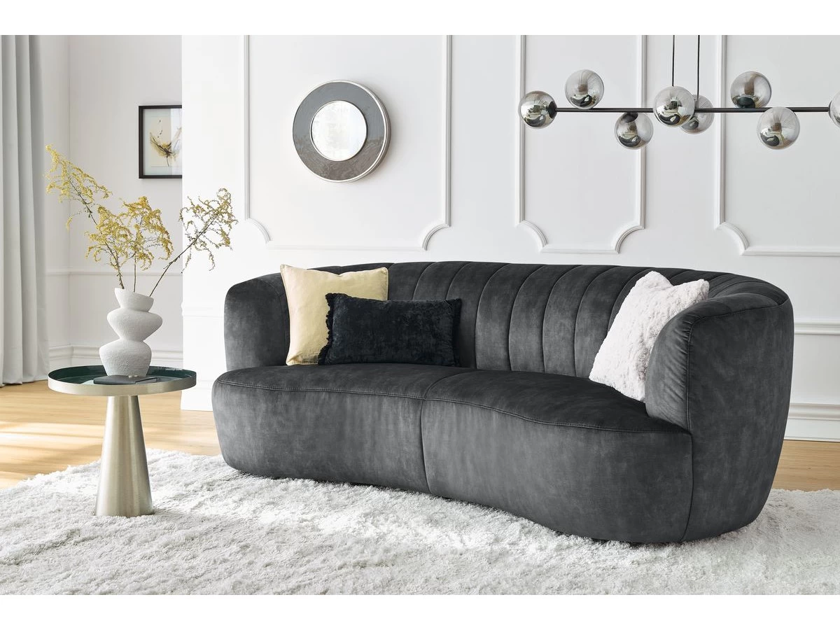 Pour un séjour vraiment unique, le canapé VENDÔME offre une combinaison incroyable : des courbes élégantes et sensuelles et un tissu imitation velours particulièrement tendance. Le velours est un tissu intemporel, qui se démarque immédiatement des autres éléments d’une décoration d’intérieure. Sans compter que ce tissu offre un rendu légèrement brillant et vous permettra de vous créer une atmosphère raffinée, et ce en toute subtilité.