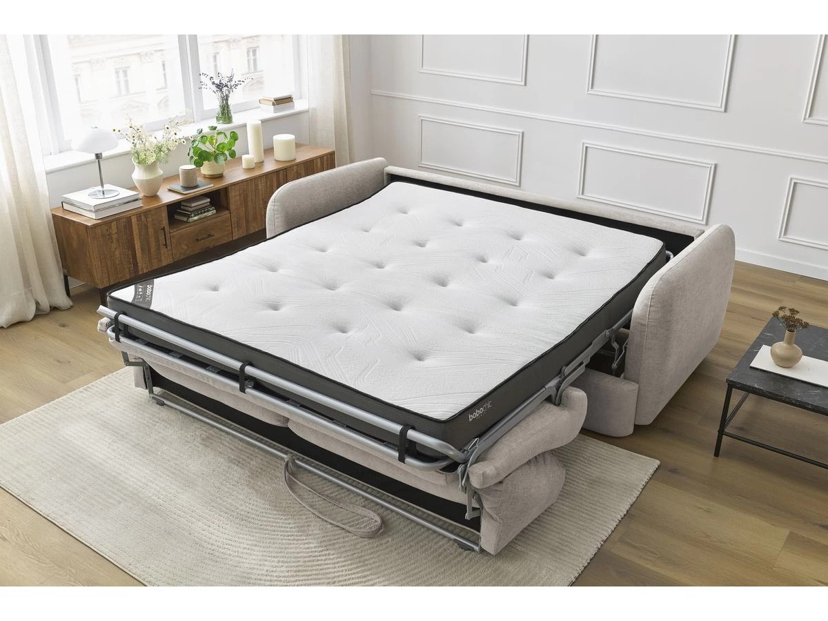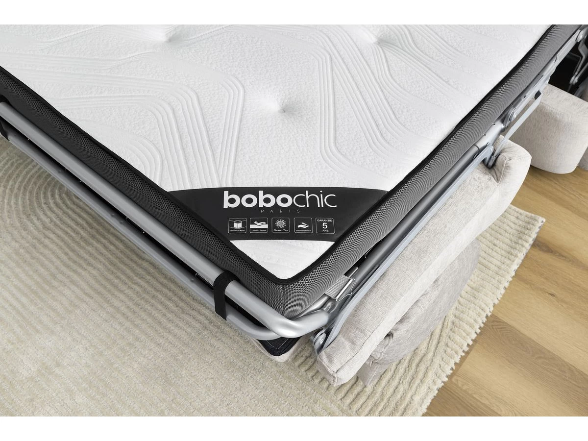Qui plus est, le canapé droit JAURES s’accompagne d’un matelas capitonné avec un design authentique et d’un très grand confort. Celui-ci vous offrira un maintien parfait sur l’ensemble de votre corps, tout en vous facilitant vos mouvements afin que vous bénéficiiez d’un sommeil de très bonne qualité ! Et ce, aussi bien pour un usage quotidien ou plus occasionnel ! Sans oublier qu ce matelas est hypoallergique, ainsi il a été travaillé de façon à prévenir les risques de réactions d’allergie et vous assurez une qualité de sommeil optimale !