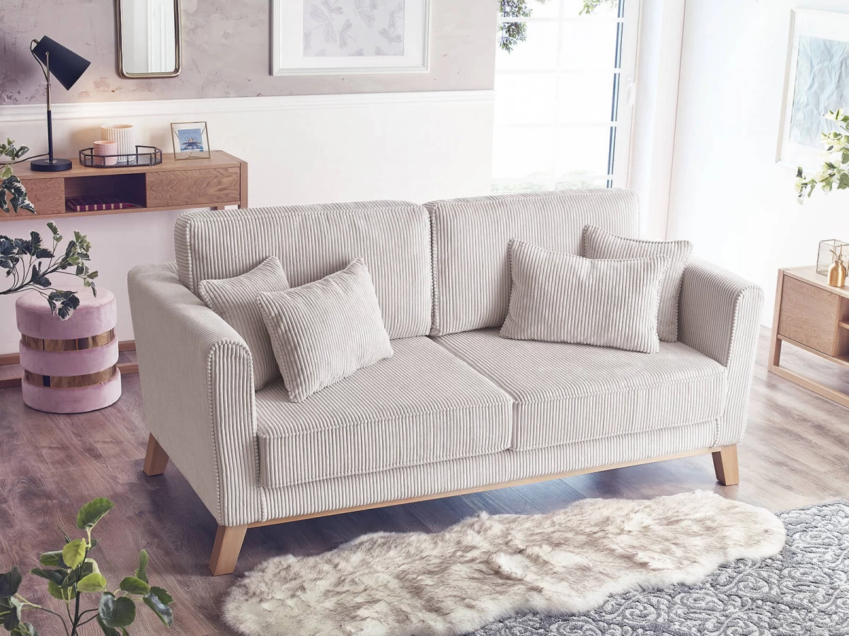Le canapé DOBLO au style scandinave est doté d’assises et de coussins généreux dans lesquels vous serez confortablement installé. Le velours côtelé, doux au toucher, donnera un côté chaleureux à votre salon. Il est disponible en plusieurs coloris, de quoi tous vous satisfaire.