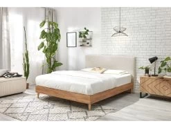 Craquez pour la structure de lit LOVELY aux tonalités douces. La tête de lit est recouverte d’un tissu bouclette blanc qui est parfaitement dans la tendance du moment ! Le tour du lit, en panneau mélaminé haute qualité effet bois naturel, se mariera facilement au style de votre chambre et ses pieds coniques en bois sont du meilleur effet. De plus, les 14 lattes massives composant le sommier vous assurent un maintien optimal durant votre sommeil.
