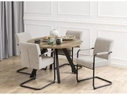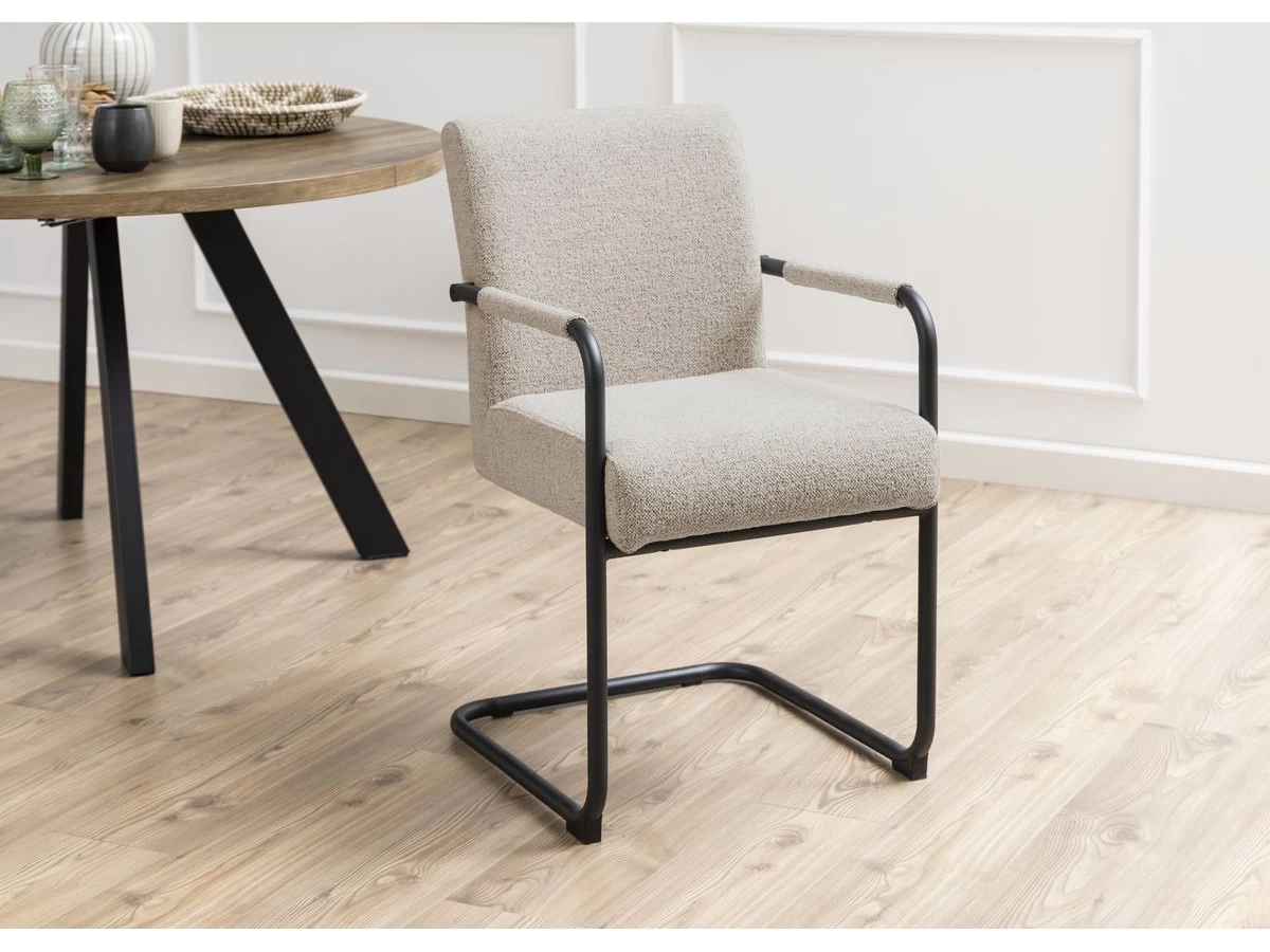 Le lot de 2 chaises de table ROBIN est idéal pour un intérieur au goût du jour ! Le tissu texturé beige se marie idéalement avec les pieds noirs mat et l’assise « suspendue » apporte toute l’originalité à ces chaises. Craquez pour ce lot qui habillera instantanément votre table !