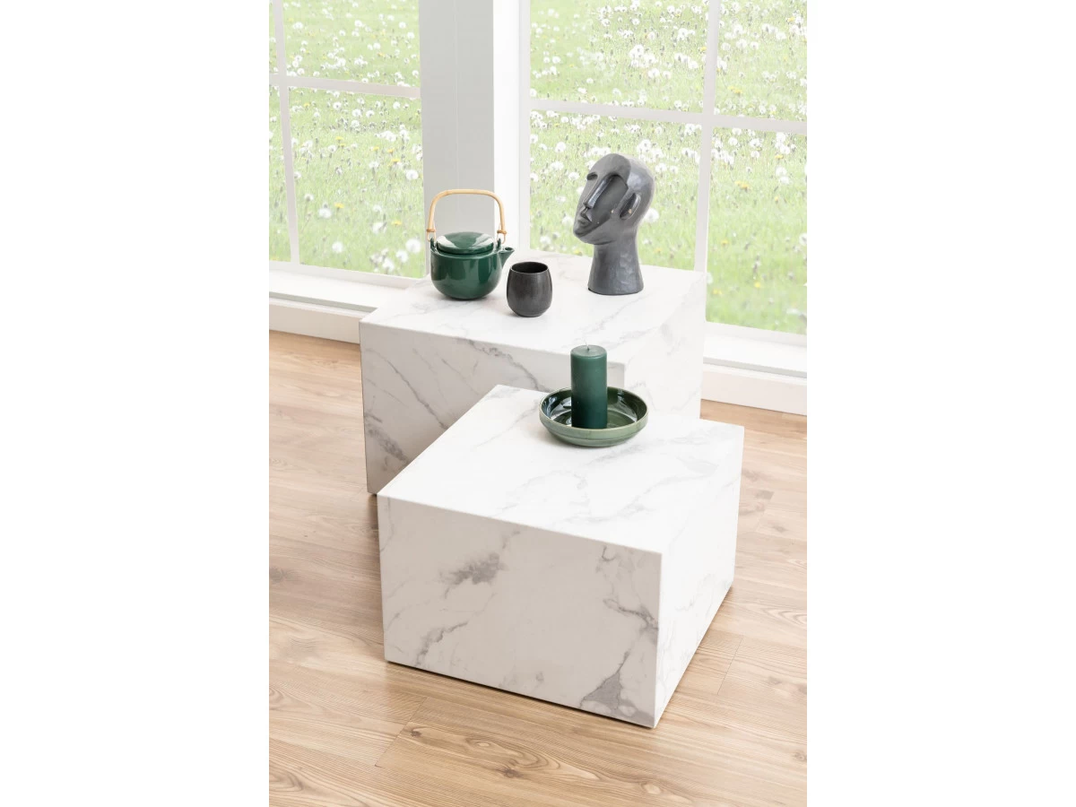 Bobochic vous présente le lot de tables basses ROCHEFORT. Le design sobre et moderne apporté par la forme carrée des tables s’associe à la perfection avec l’effet marbre pour sublimer votre intérieur.