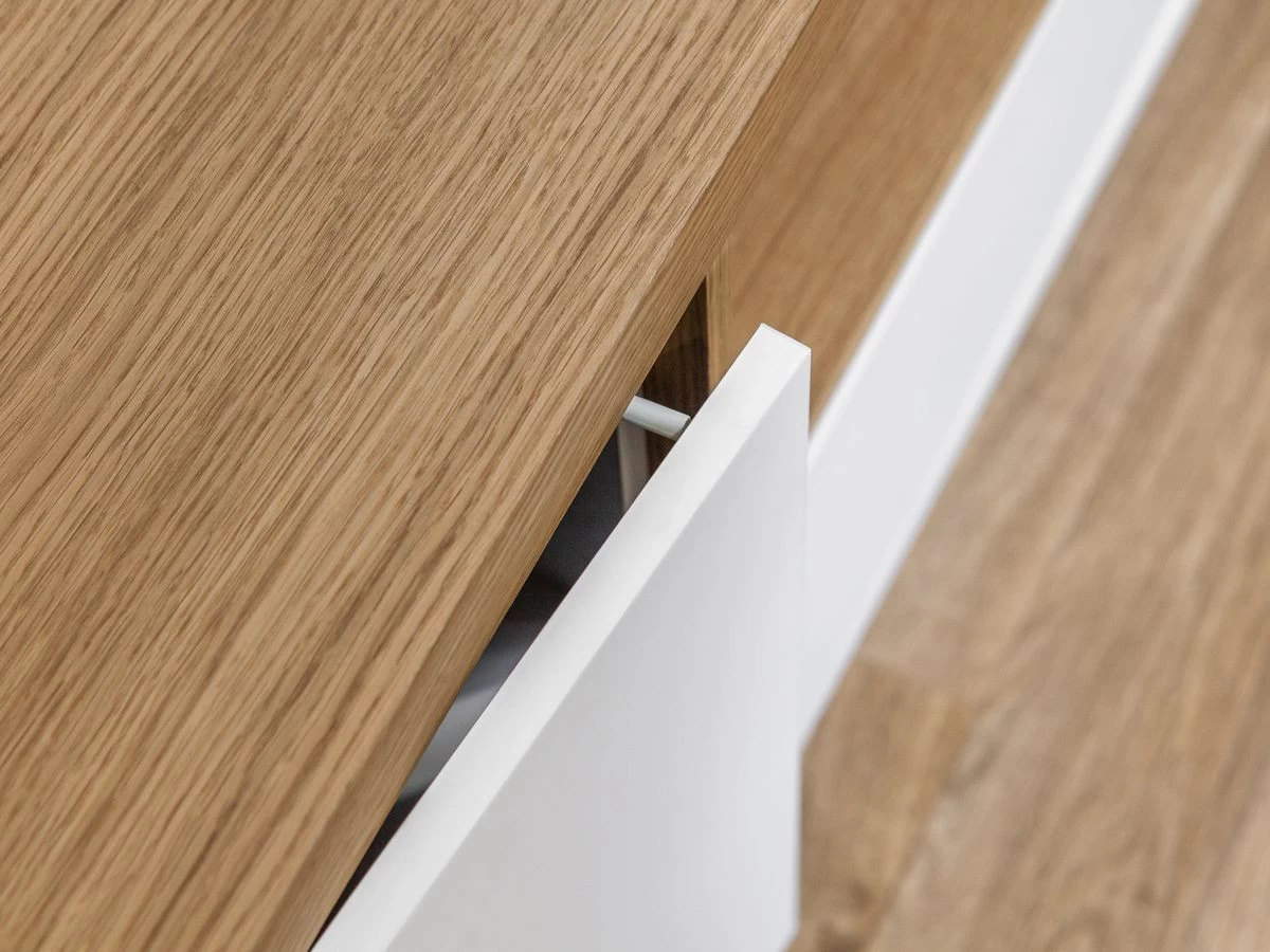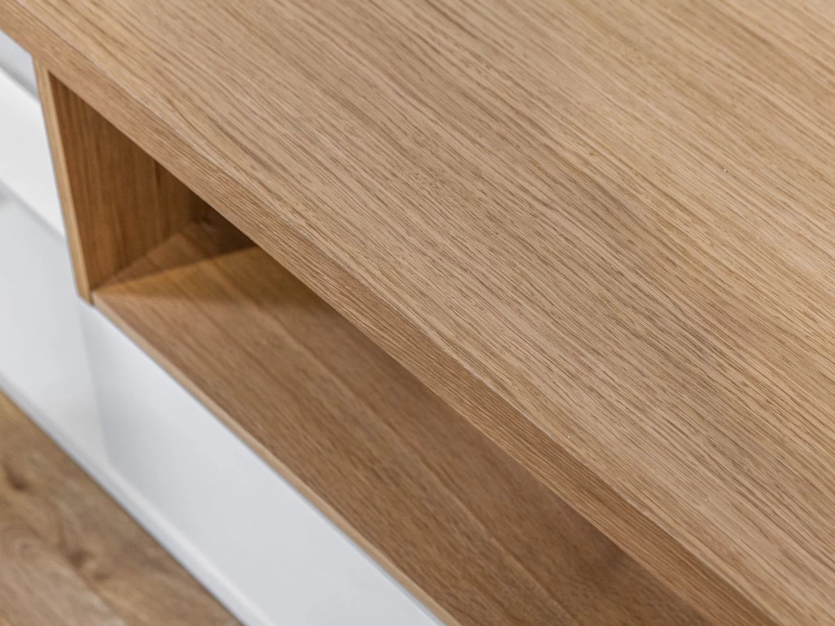 Ce qui frappe en premier avec la collection, c’est son visuel. Avec ses lignes épurées, la combinaison de blanc et de chêne, cette collection saura marquer votre décoration d’intérieur de son empreinte. Si vous êtes en quête de meubles résistants grâce au placage chêne et capables de sublimer votre déco, de lui apporter une touche de chaleur et de lumière, alors celle-ci est faite pour vous. Laissez-vous séduire par des produits intemporels et modernes, et donnez à votre intérieur une nouvelle ambiance élégante, apaisante et surtout très tendance !