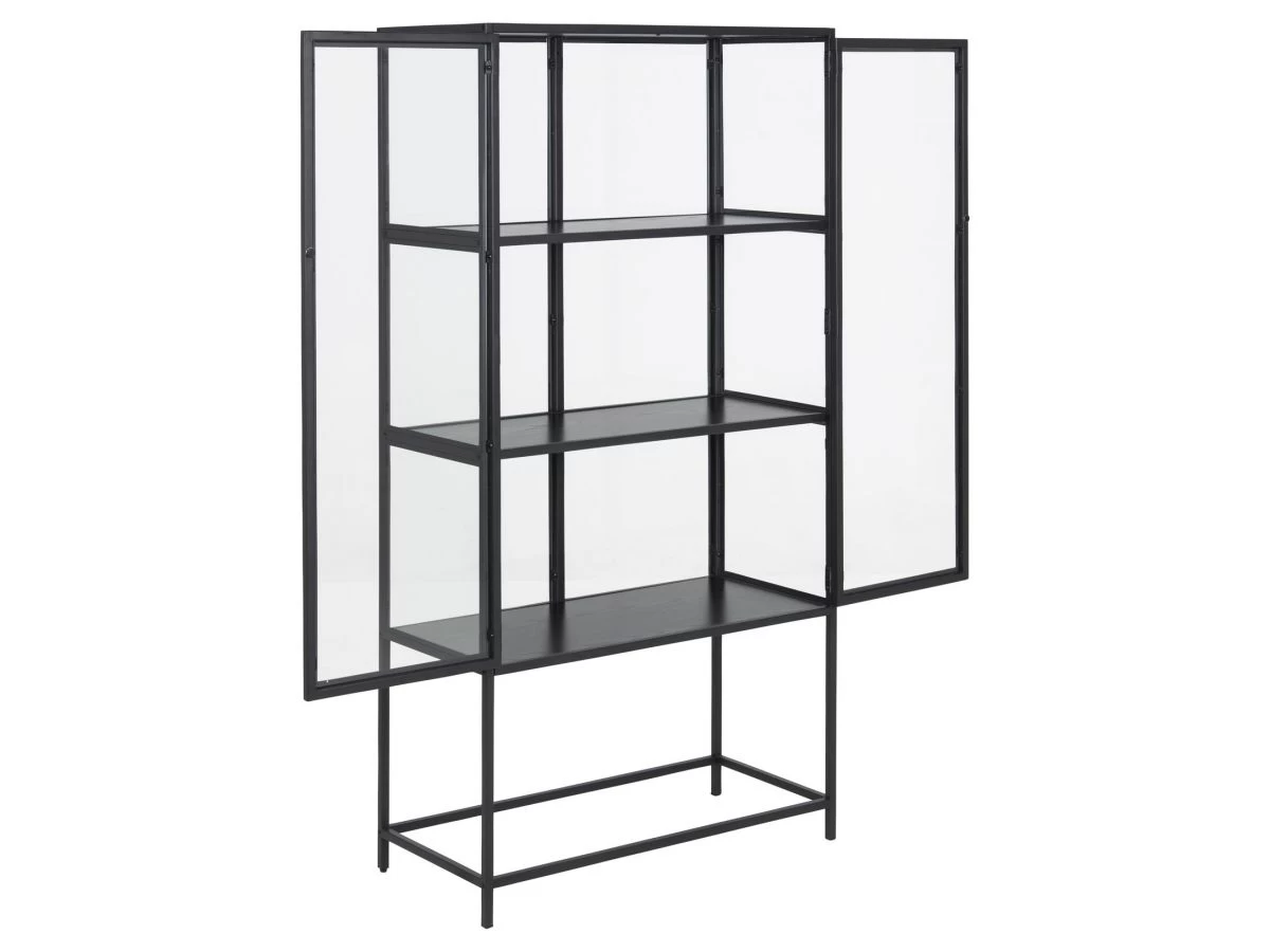 Optez pour le rangement vitrine RAVEN en métal noir ! Ses portes tout en transparence donnent au meuble ce côté épuré et ainsi, vous pourrez y entreposer tous vos objets de déco afin qu’ils soient visibles ! Ce meuble moderne pourra s’intégrer aisément dans tout type de décoration d’intérieur.