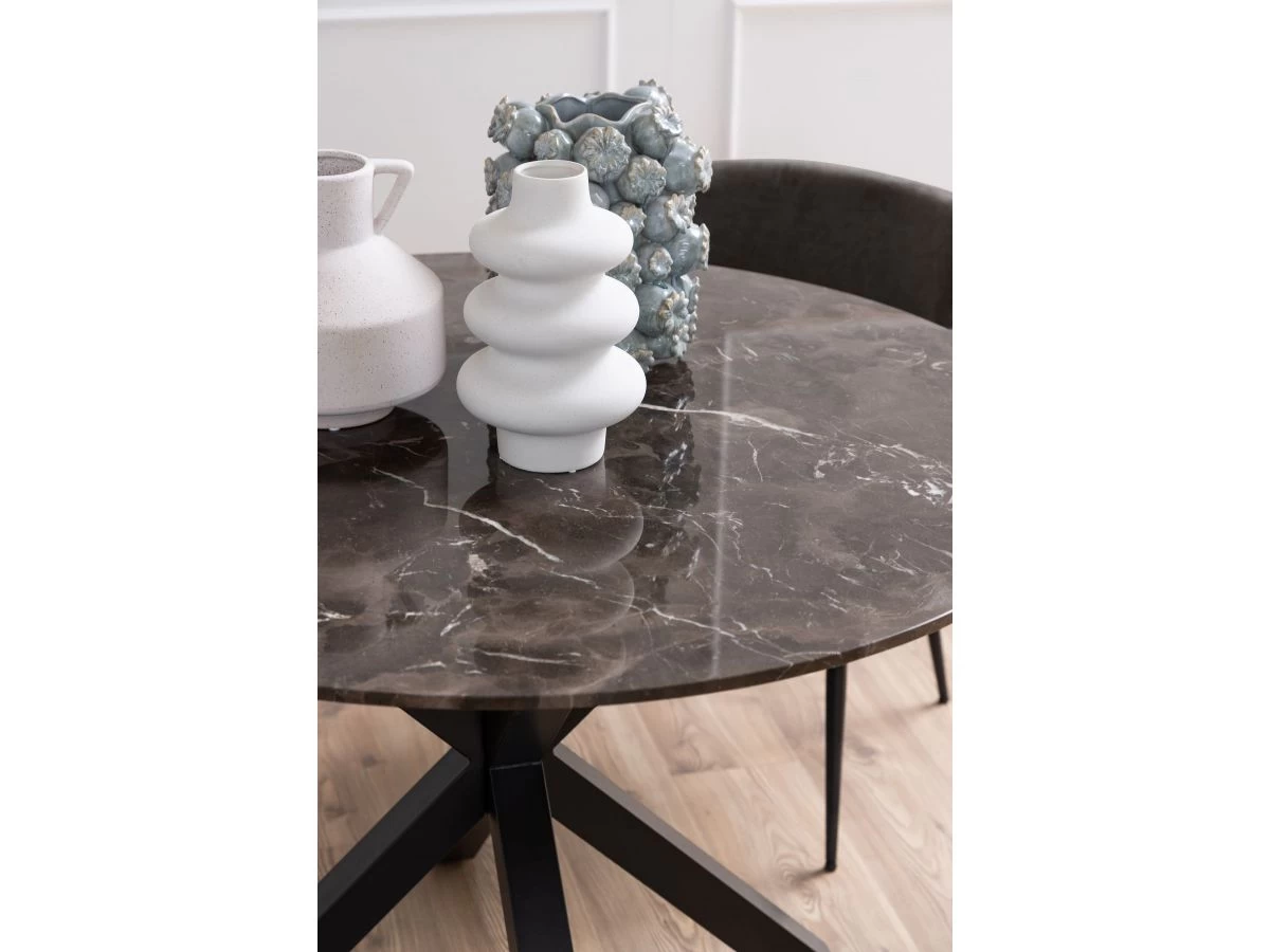 La table à manger LUNA ronde offre un style 100% moderne pour une ambiance harmonieuse et tendance. Facile d’entretien grâce à son plateau en marbre. Design intemporel notamment par sa forme et son colori marron foncé !