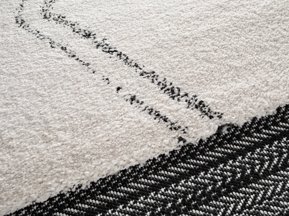 Avec son style hautement décoratif, ce tapis se distingue par des motifs bicolores sophistiqués tissés à plat. Les motifs à poils longs créent un effet de relief luxueux, offrant une expérience tactile somptueuse. Laissez-vous séduire par l’élégance artistique de ce tapis, rehaussant votre espace de manière unique.