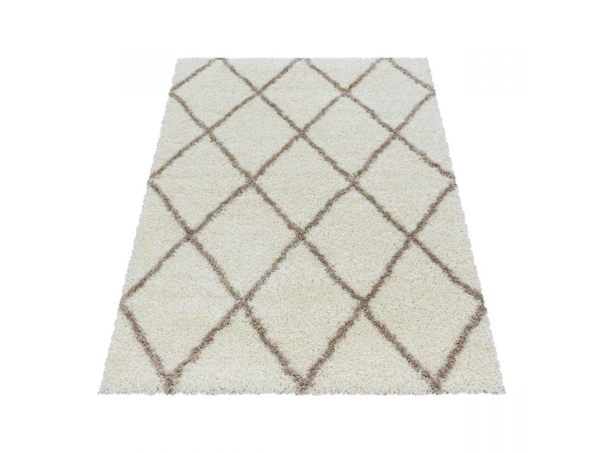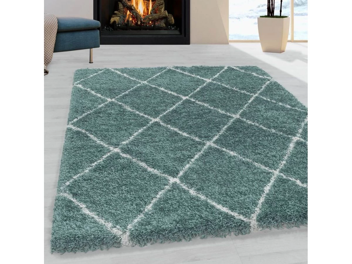 Le tapis shaggy LANA est un tapis à poils longs de qualité supérieur, tissé avec un fil laineux de haute densité pour donner une sensation de douceur, motif avec des lignes en diamant et des couleurs tendances.